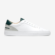 Le best-seller de notre série Lione. Réalisé en cuir nappa blanc, vert et finitions en cuir suède gris, intégralement doublé en cuir de veau. Ce modèle robuste et élégant est conçu pour durer et développer une patine subtile avec le temps.